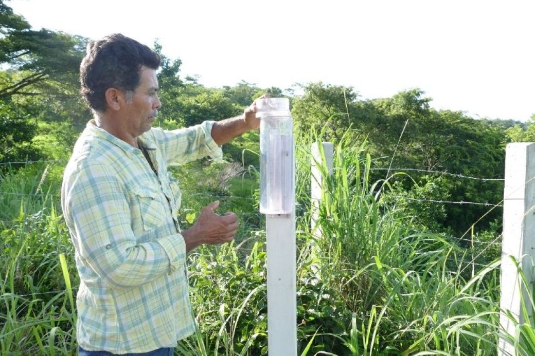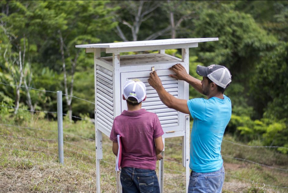 Der zweite wichtige Bereich ist die gemeindebasierte Klimabeobachtung: Diese ermöglicht den Produzent*innen ein besseres Verständnis der Auswirkungen des Klimawandels auf ihre Produktion und dadurch die Möglichkeit rechtzeitig Vorsorgemaßnahmen zu ergreifen, um Ernteverluste zu verhindern. Im Rahmen des INKOTA-Programms werden fünf Klimastationen mit verschiedenen Instrumenten ausgestattet, um Lufttemperatur, Luftfeuchtigkeit, Bodentemperatur und Niederschlagsmengen erfassen zu können. 15 Kleinbauernfamilien werden außerdem zu Klimabeobachter*innen ausgebildet, die in den Projektgemeinden kontinuierlich Klimadaten erheben und im Anschluss verbreiten.