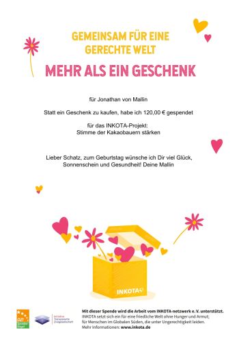 3. Sie machen Menschen im Globalen Süden eine Freude mit Ihrer sinnvollen Unterstützung und Ihrer/Ihrem Beschenkten eine Freude mit einem sinnvollen Geschenk.