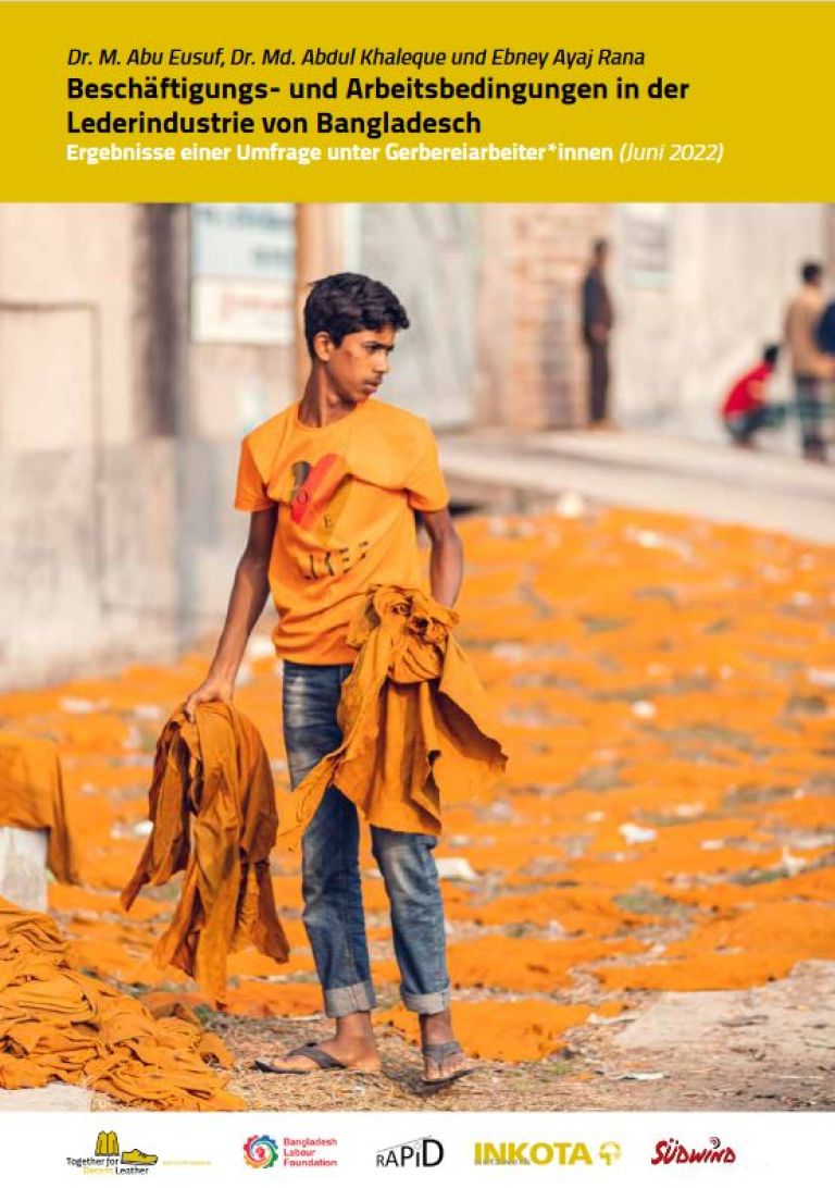 Menschen in der Lederindustrie in Bangladesch sind schwerwiegenden arbeitsrechtlichen und menschenrechtlichen Risiken ausgesetzt. Das verdeutlicht die neue Studie der Bangladesh Labour Foundation (BLF) und von INKOTA für die gemeinsame Initiative Together for Decent Leather. Festgestellt wurden extrem niedrige Löhne, Gesundheitsrisiken am Arbeitsplatz, massive Umweltverschmutzung und erzwungene Überstunden. Der Studie liegt eine umfangreiche Recherche des Bangladesh Labour Foundation (BLF) und RAPID zugrunde, in der 120 Gerbereiarbeiter*innen einbezogen wurden.