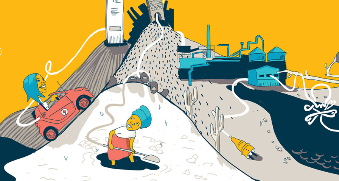 Beispiel Lithium: Während 2016 noch 10.000 Tonnen Lithium für Elektro-Fahrzeuge benötigt wurden, werden 2050 bis zu 1,1 Millionen Tonnen gebraucht – also die 110-fache Menge! Die Gewinnung aus den Salzseen Lateinamerikas führt zu akutem Wassermangel und bedroht Weidewirtschaft, Ackerbau und den Tourismus, der für viele Menschen in der Region die zentrale Einkommensquelle ist.