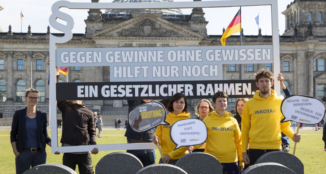Die „Initiative Lieferkettengesetz“ ist am 10. September mit einer Auftaktaktion vor dem Bundestag zum Jahrestag der Ali Enterprises-Brandkatastrophe an die Öffentlichkeit gegangen. Sie wird von über 70 Nichtregierungsorganisationen aus den Bereichen Entwicklung, Menschenrechte, Fairer Handel und Umwelt sowie kirchlichen Organisationen und Gewerkschaften getragen und unterstützt.