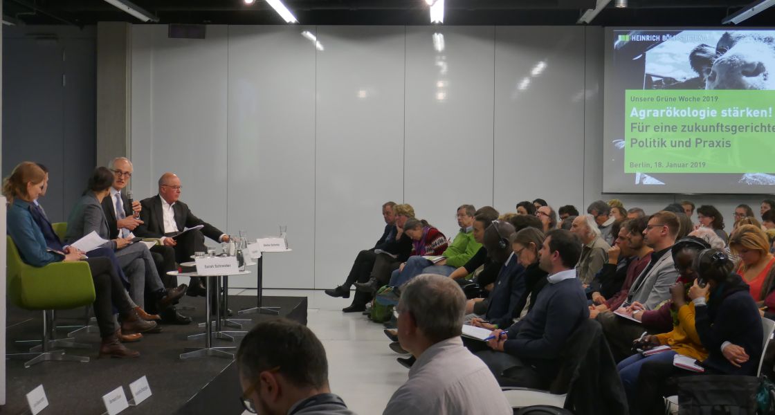 Anlässlich der Grünen Woche im Januar präsentierte INKOTA im Bündnis mit 56 zivilgesellschaftlichen Organisationen einen umfangreichen Forderungskatalog: Die Bundesregierung soll unter anderem agrarökologische Maßnahmen bis 2021 mit 300 Millionen Euro unterstützen und in ihrer Klimapolitik berücksichtigen. Unsere Forderungen konnten wir direkt mit einem hochrangigen Vertreter des Entwicklungsministeriums diskutieren – vor 250 Zuhörer*innen.