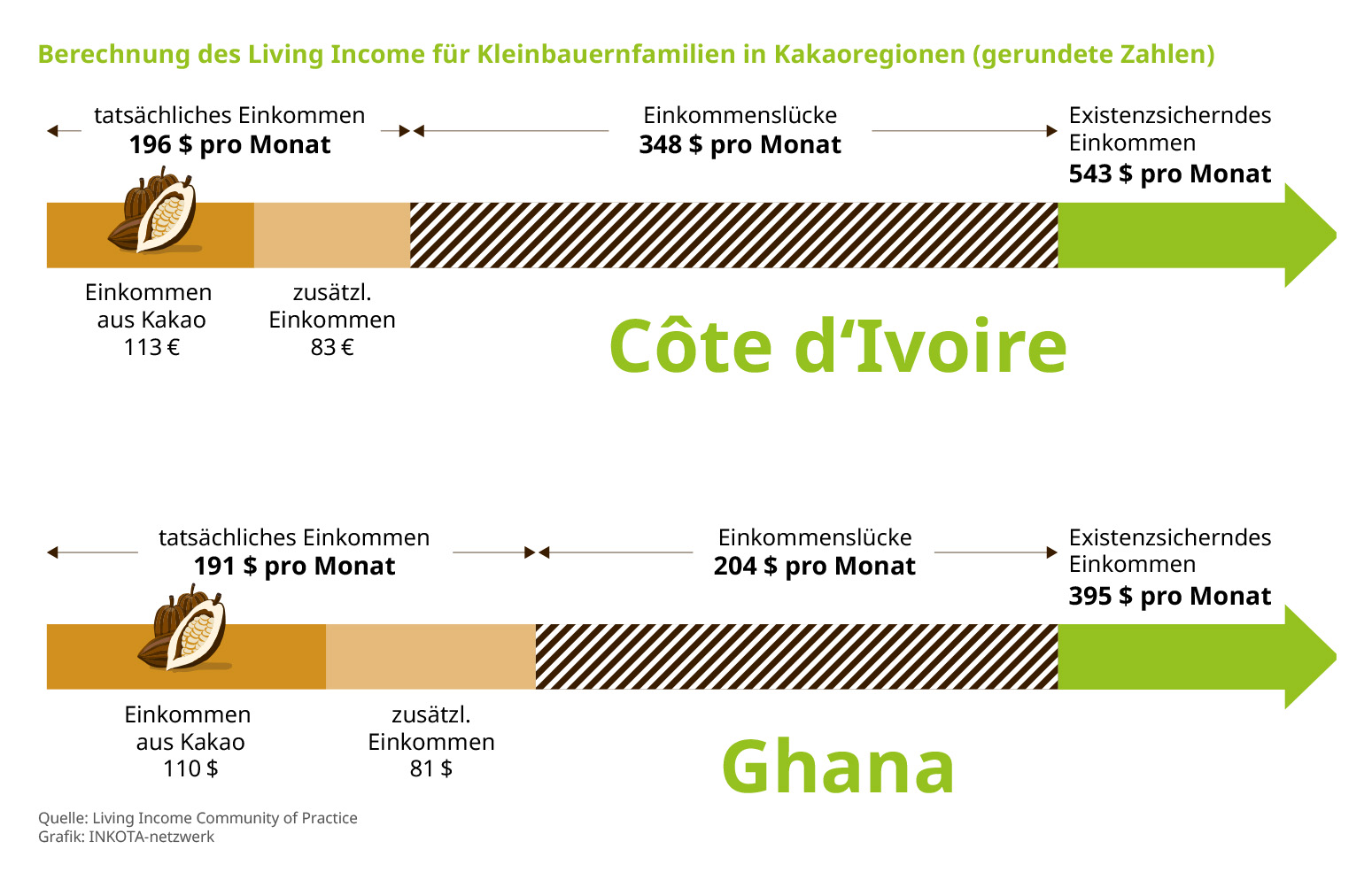 Graphik: Berechnung des Living Income für Kleinbauernfamilien in Kakaoregionen