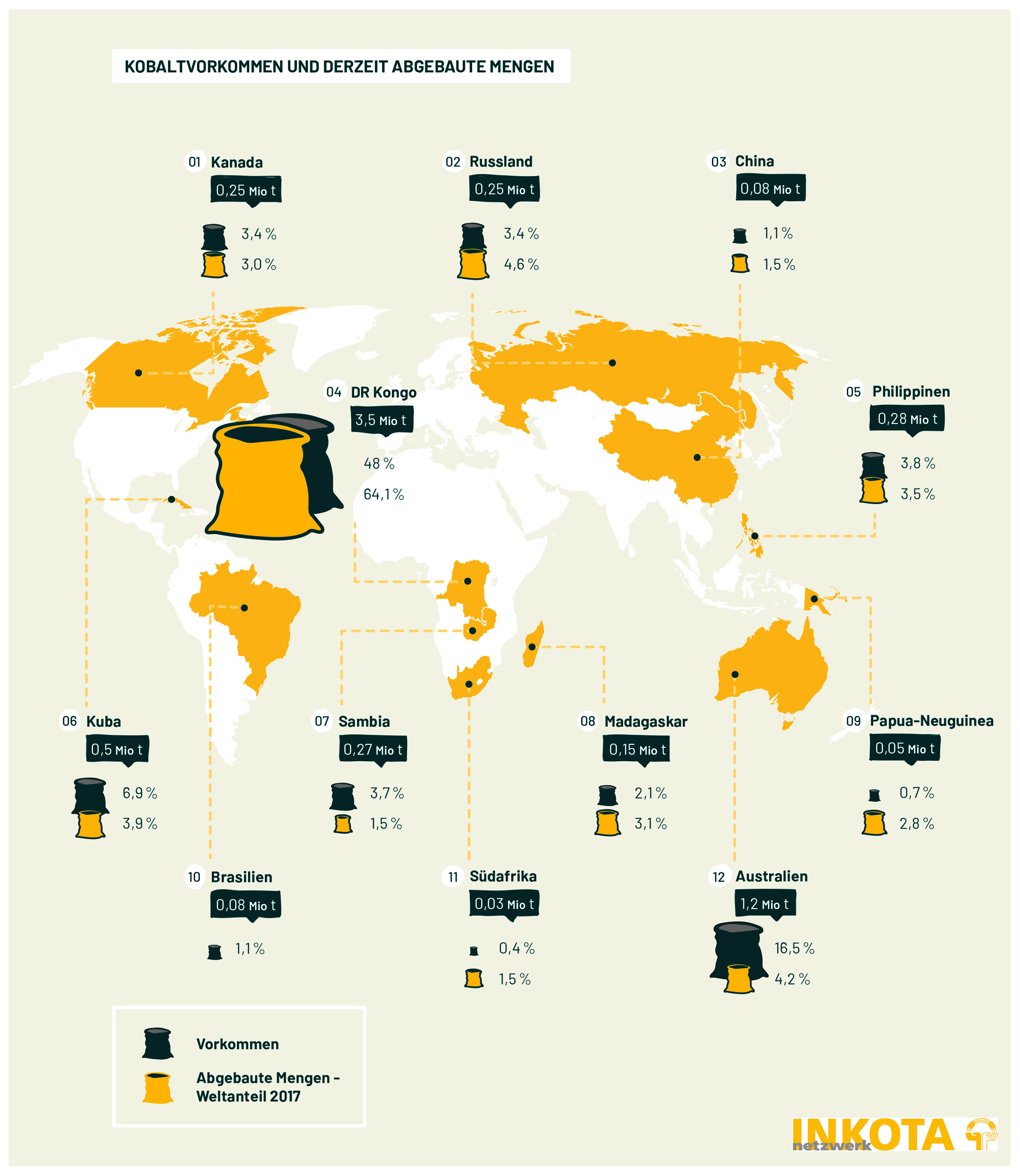 Graphik: Kobaltvorkommen und abgebaute Mengen weltweit