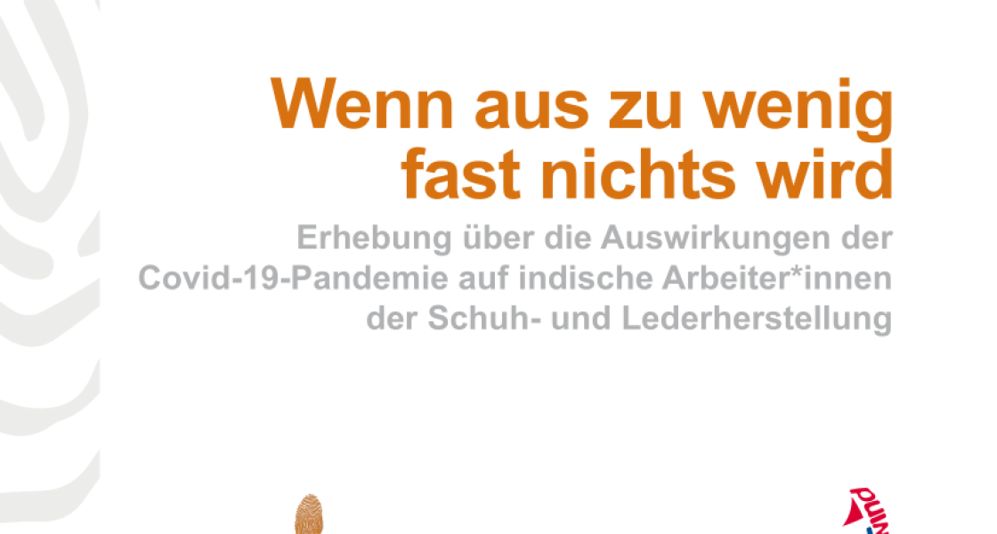 Extreme Einkommensverluste, fristlose Kündigungen, keine sozialen Sicherungssysteme – im Zuge der Covid-19-Pandemie bangen Arbeiter*innen der indischen Schuh- und Lederproduktion um die Sicherung ihrer täglichen Lebensgrundlagen. Das belegt die neue Studie „Wenn aus zu wenig fast nichts wird“, an der die indischen INKOTA-Partnerorganisationen Cividep und SLD mitgewirkt haben. Die Arbeiter*innen als schwächstes Glied der globalen Lieferkette leiden unter den Folgen der Pandemie am stärksten. Deshalb muss die deutsche Schuhindustrie endlich ihrer menschenrechtlichen Verantwortung gerecht werden und darf ihre Profite nicht länger auf Kosten der Arbeiter*innen machen.
