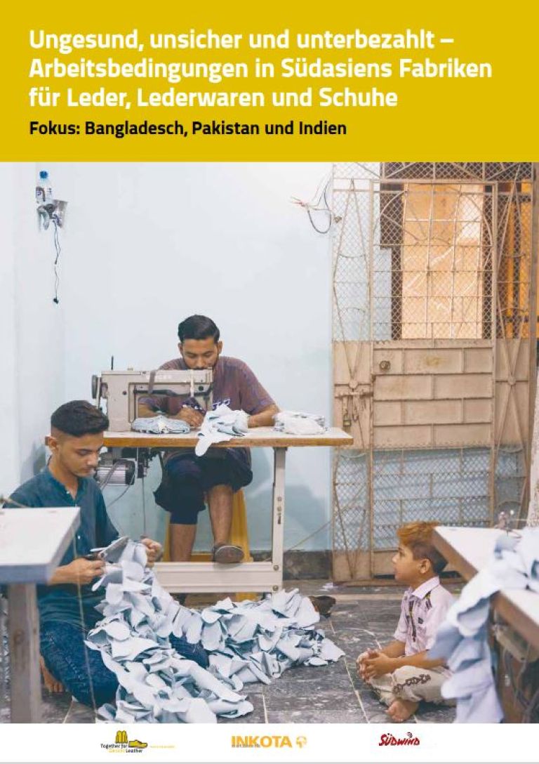 In drei Studien werten wir Interviews mit insgesamt 345 Arbeiter*innen sowie lokalen Expert*innen der Zivilgesellschaft, Wirtschaft und Regierung aus Bangladesch, Indien und Pakistan (auf Englisch) aus. Wir gehen der Frage nach, wie groß sind die Menschenrechtsverletzungen in Gerbereien und Schuhfabriken und Lederwarenfariken in Südasien tatsächlich sind und was deutsche Unternehmen und andere Akteure bereits dagegen tun. In einem sechsseitigen Factsheet haben wir die Ergebnisse aus allen drei Ländern auf Deutsch kurz und übersichtlich zusammengefasst.
