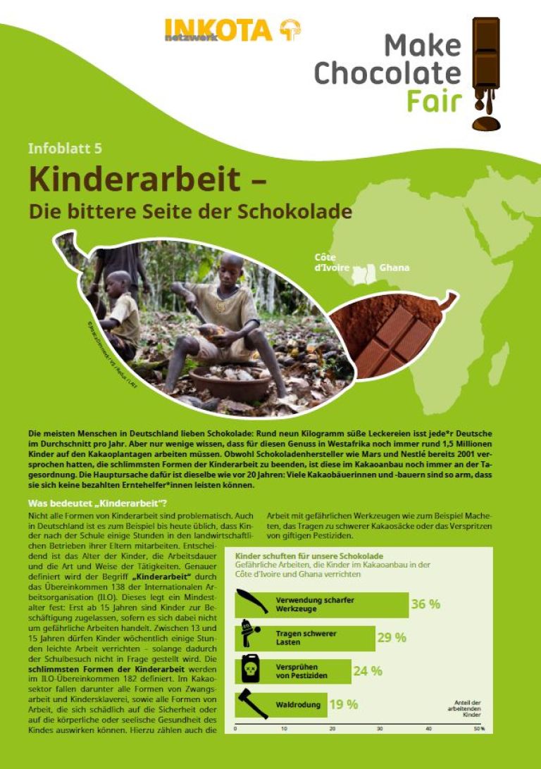- Wir fordern Schokoladenunternehmen auf, ihre Bemühungen im Kampf gegen Kinderarbeit zu intensivieren. Unternehmen müssen Überwachungs- und Korrektursysteme gegen Kinderarbeit flächendeckend in allen Risikoregionen einführen und dürfen nicht die dafür nötigen Kosten scheuen.